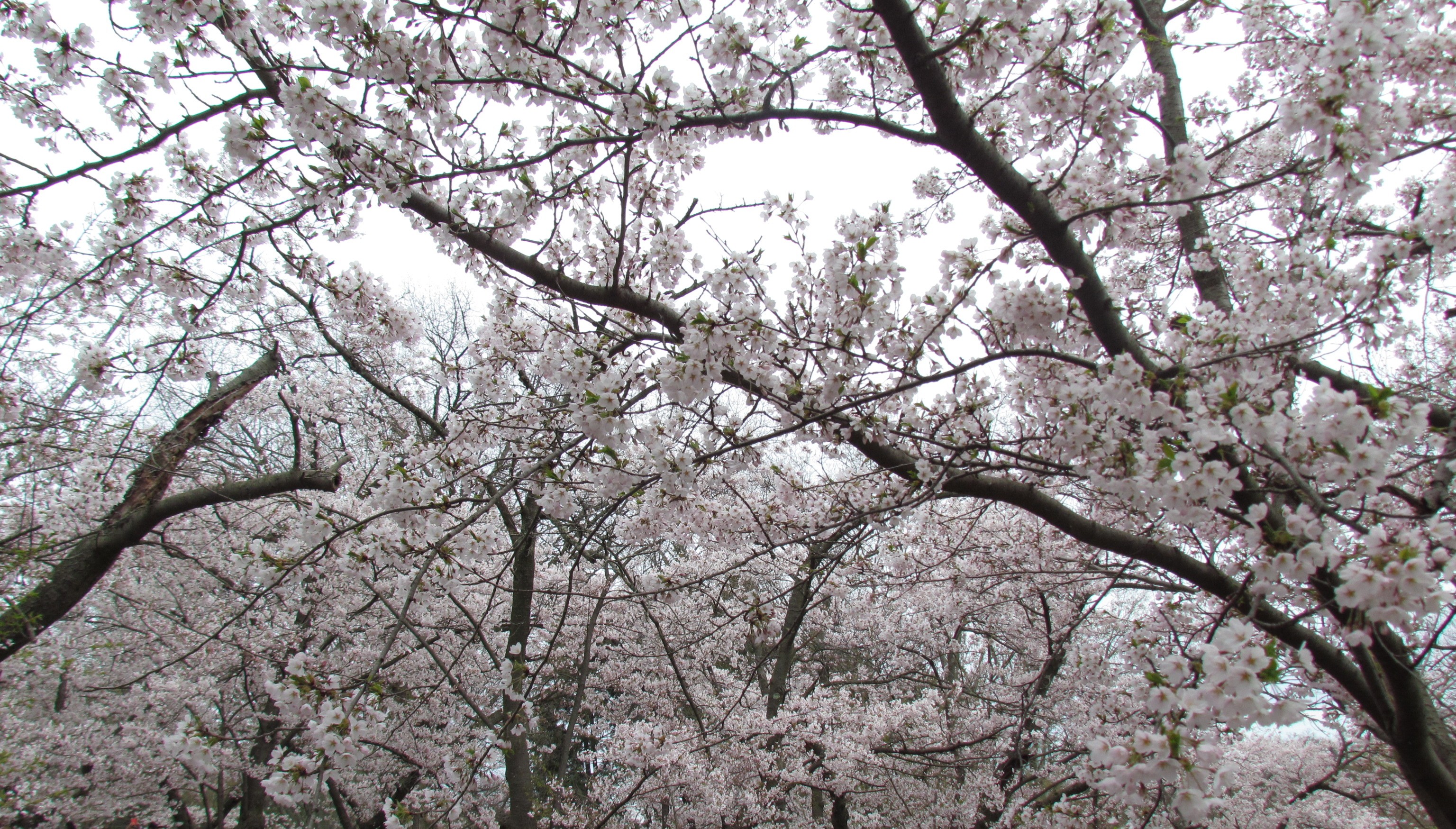 Twenty Sakura trees form a tree tunnel. They are planted along the curved path next to the pond.